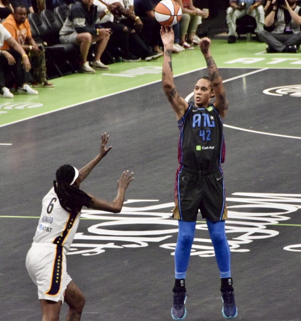 Coming off a winning game in Indiana against the Fever, Griner was greeted with welcoming cheers, like the GOAT she is. The former Phoenix Mercury star, affectionately called BG, appeared “rejuvenated” during a pregame shootaround and postgame with her son, Bash. This aligns with how she feels about Atlanta.