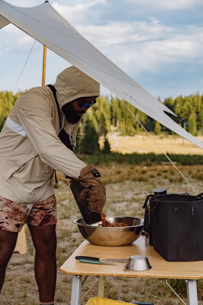 Another Camp Yoshi difference lies in its taste for adventure and chef-inspired eats. The outdoors does not stop Frazier from providing the same meals you’d try in fine dining establishments. Inspired by their dozens of eco-adventures, Frazier has developed a cookbook, aptly titled Cookout, for a 2026 release. Its recipes encourage by-the-fire cooking and eating, allowing people to share a meal under the stars.