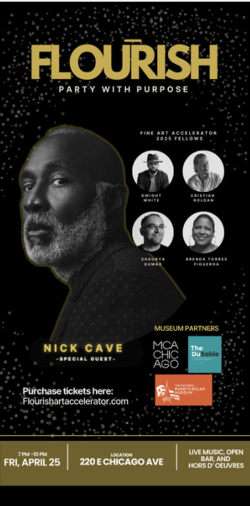 Flourish’s 2025 Fellows include one curator and three visual artists. Accelerator leaders chose each artist from a competitive pool of 40 Chicago-based creatives for their visionary projects that deepen community awareness, reimagine the collective future, and honor cultural icons shaping the next generation.