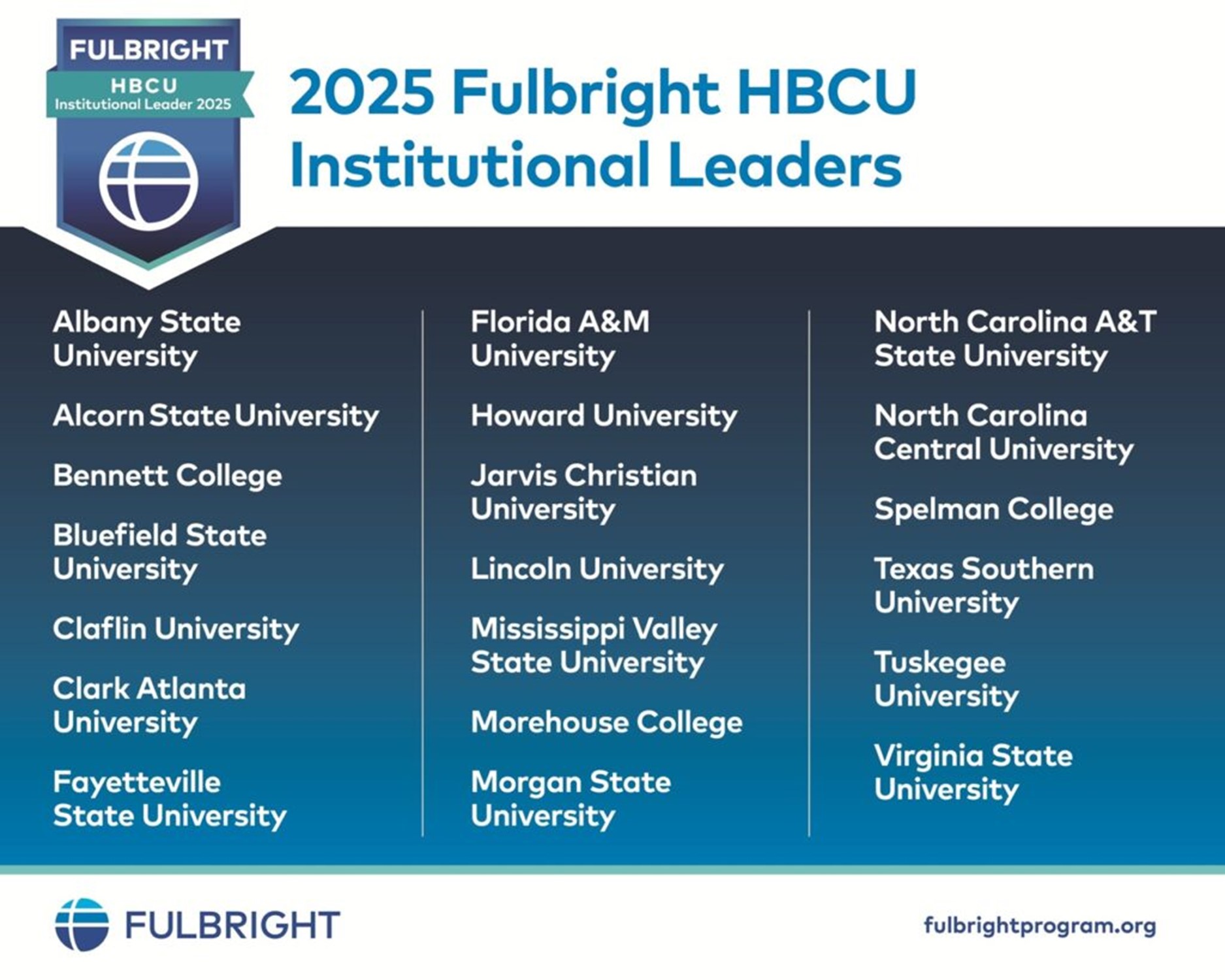Named 2025 Fulbright HBCU Institutional Leaders, these institutions are lauded by the program, which is administered by the U.S. Department of State and funded by the federal government.