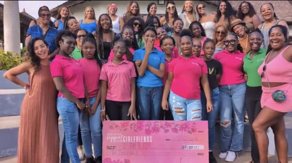 “So we partnered with I Am A Girl, a Barbados NGO. The first year, the impact with these young girls, we did a workshop again, and all of the programming is through us. So one of our glossy sisters, Nadine Ramos, owns Lasio, a professional haircare company, and Blessed Bananas, and came up with the concept of doing a workshop with these girls. It probably was about 50 girls, and then we did a support circle, and oh my goodness, we were friends and thought these girls needed us. No, we needed them. They gave us so much life.”