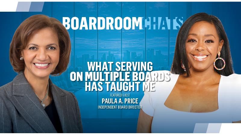 Paula A. Price, an independent director for Accenture, Bristol Myers Squibb, Mondelēz, and Warner Brothers Discovery, shares why she keeps saying yes to board service and how making an impact starts with asking the right questions.